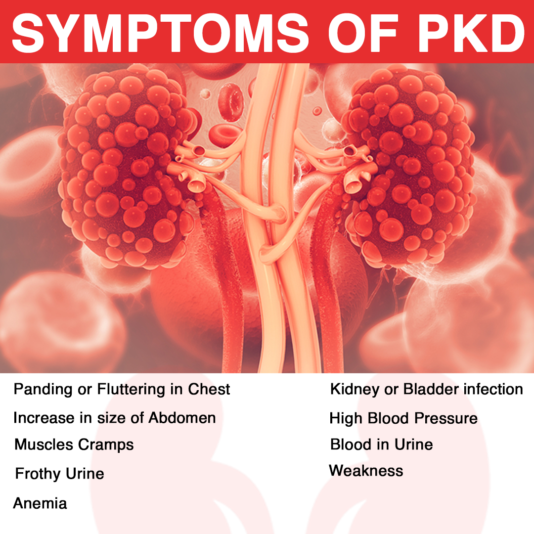If a person is suffering from polycystic kidney disease, it may not be diagnosed early. People develop their symptoms when they are above 30 to 40 years of age. When the size of the kidney increases, it possesses pressures over the kidney, hence causing damage to the filtration power of the kidney.